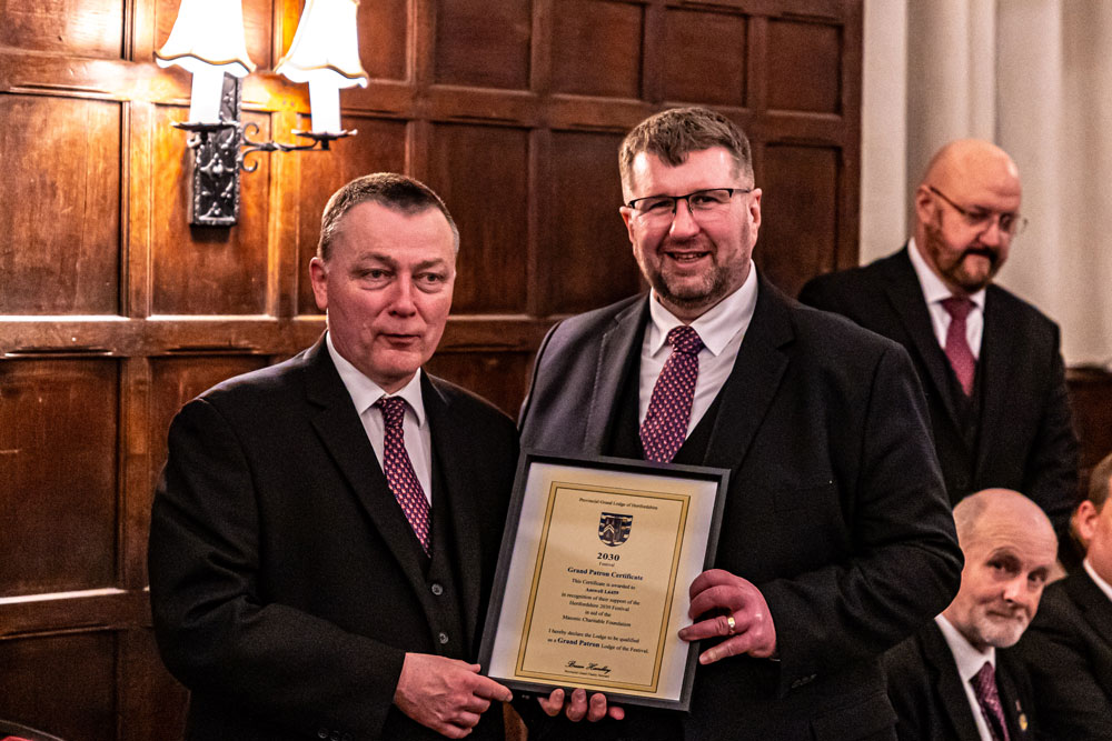 During the meeting, the Lodge was also presented with its Grand Patron Certificate by APGM W.Bro Martin Francis, in recognition of its support for the Hertfordshire 2030 Festival.